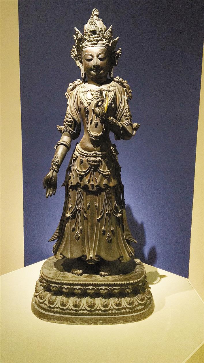 記者看到,如今正在舉行的“觀照自在——中國古代觀音造像藝術(shù)展”展出中國漢藏兩大佛教體系中觀音及其化身、本尊、眷屬等相關(guān)造像共計百余件,包括銅造像、繪畫、瓷塑以及木雕等多種質(zhì)地,均為首都博物館所藏,藝術(shù)文化價值極高。由此亦可見首都博物館所藏佛教文物非常豐富。