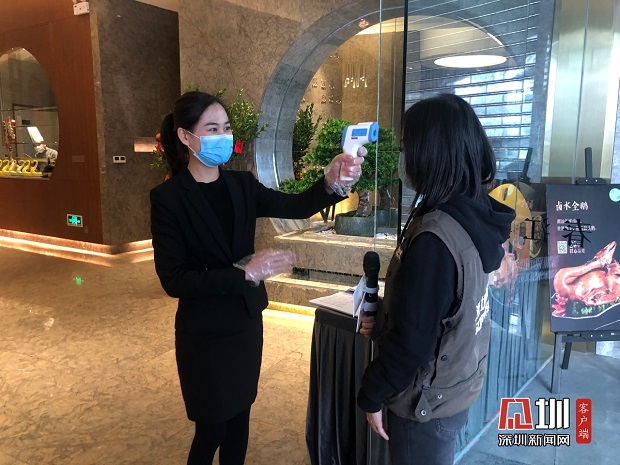 春江潮餐廳對進店人員測量體溫。