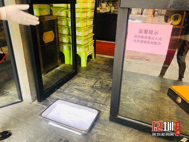 小芙蓉餐廳要求進店人員雙腳消毒后方可進去。