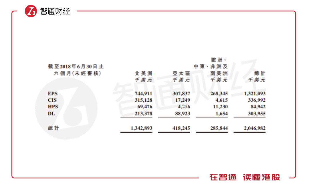 根據(jù)該公司業(yè)務(wù)布局情況,核心的EPS主要布局在北美洲地區(qū),收入7.45億美元,同比增長3%,收入占比36.4%,亞太區(qū)為3.08億美元,同比增長2.7%,北美及亞太區(qū)的EPS收入占比達(dá)51.45%。所有產(chǎn)品布局在亞太區(qū)及北美區(qū)收入合計(jì)17.61億美元,同比2.2%,收入占比86.03%。