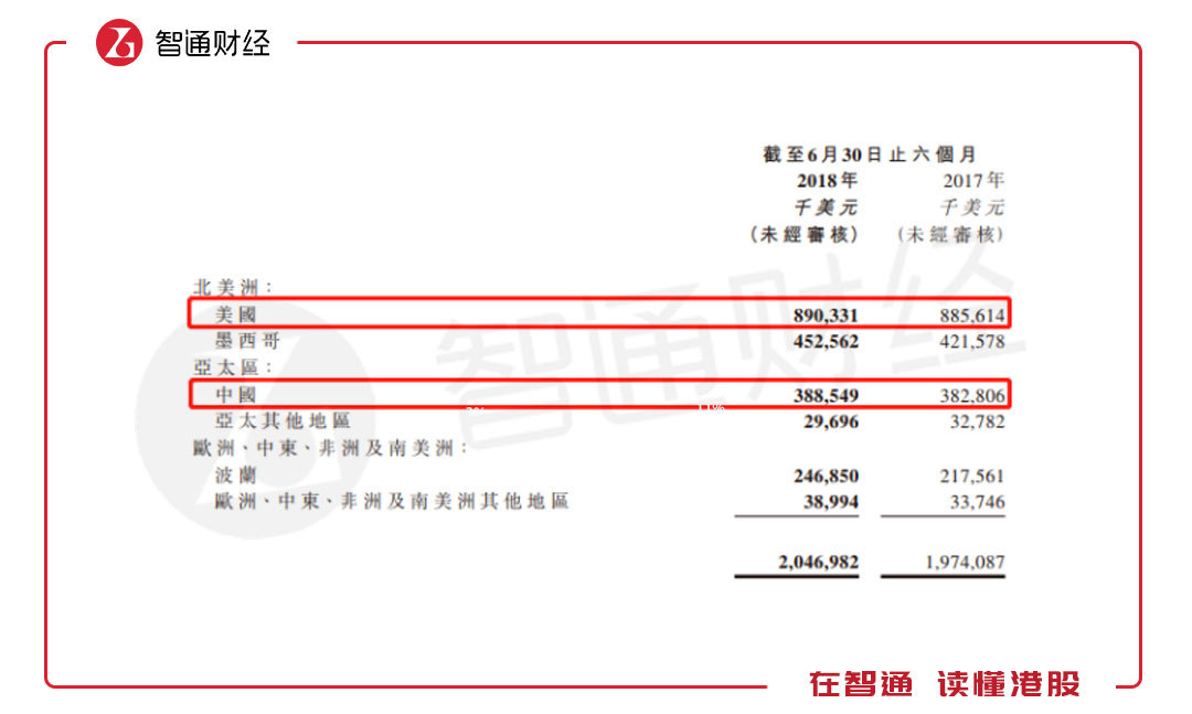 從國家分布上看,該公司的分布的有四大國家,分別為美國、墨西哥、中國及波蘭,上半年收入占比分別為43.4%、22%、19%及12.1%,合計(jì)占比96.5%,這四大國家收入增速分別為0.5%、7.4%、1.5%及13.5%,基本和所在國家的汽車銷量增速保持一致。中國和美國兩大市場收入占比62.4%。