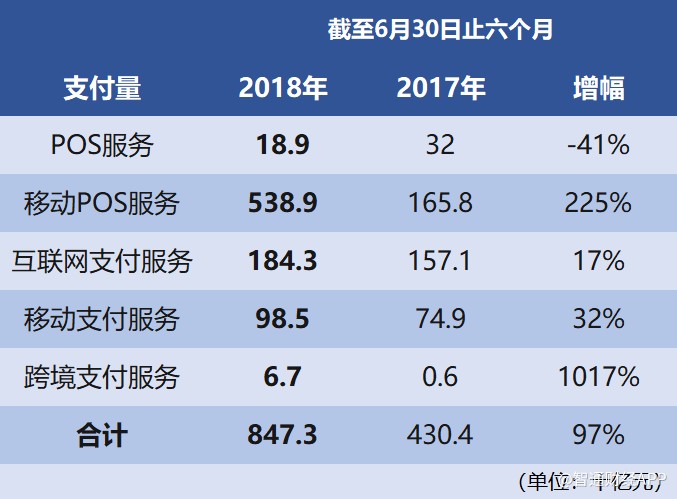 這個數(shù)據(jù),其實是比整個第三方支付行業(yè)的成長還要高出一半以上的——根據(jù)Frost & Sullivan統(tǒng)計的行業(yè)數(shù)據(jù),截至2018年底,中國第三方支付行業(yè)的支付交易總量預計將達到人民幣225.3萬億元,較2017年上升47%。
