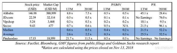 拼多多截至2018年第二季度的12個(gè)月市銷率為21.7倍,是行業(yè)巨頭阿里巴巴(8.8倍)的兩倍有余,也是京東(0.5倍)等更成熟的中國(guó)電子商務(wù)企業(yè)的44倍之多。京東的大部分收入來(lái)自直銷,而非商家服務(wù),因此這種對(duì)比并不完美,但這只是一個(gè)例證。若按照2018年的市盈率計(jì)算,與阿里巴巴和其他中國(guó)電子商務(wù)公司相比,拼多多的股價(jià)仍然顯得非常昂貴(11.5倍)。