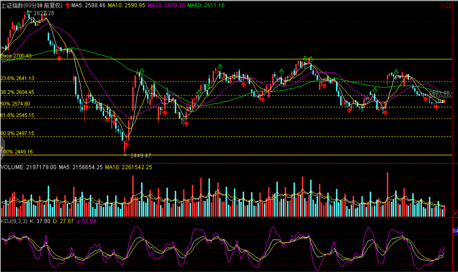 技術(shù)面:短期企穩(wěn)回升,弱勢(shì)反彈,60分鐘黃金分割線滬綜指2604點(diǎn)、2641點(diǎn)、創(chuàng)業(yè)板1360點(diǎn)一線存在壓力。