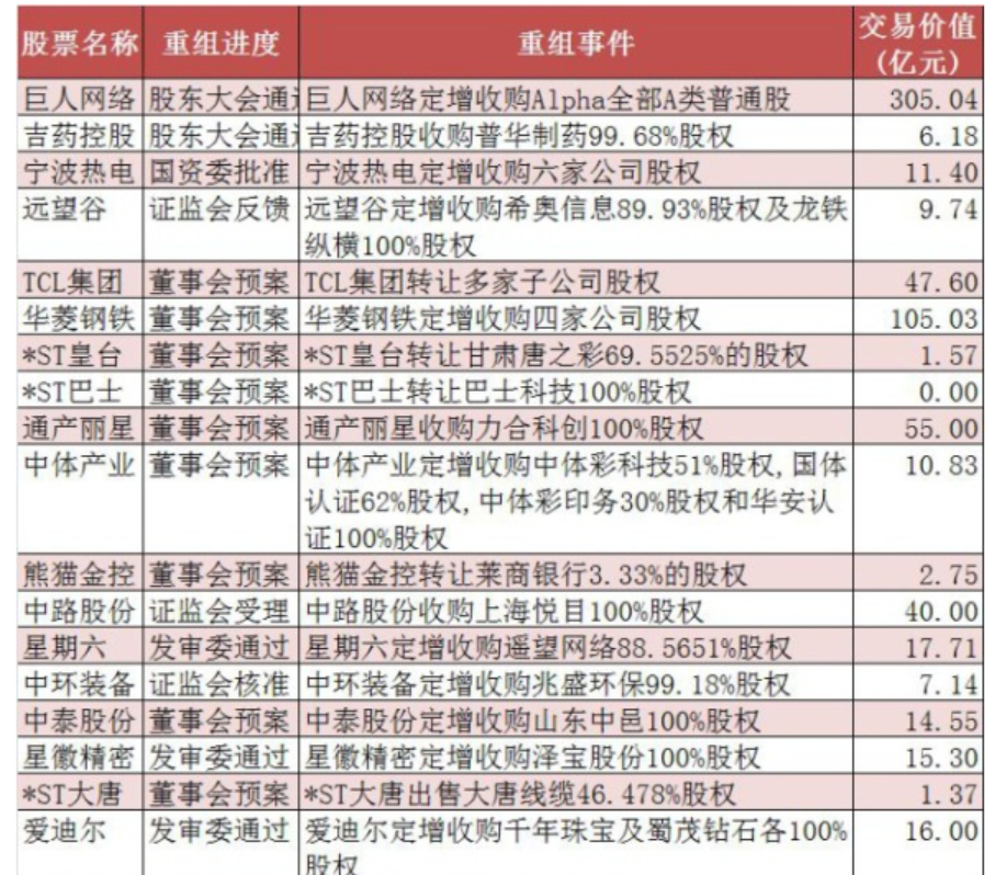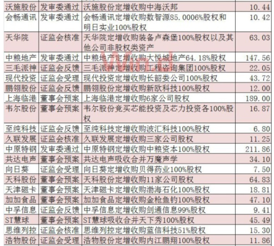 并購(gòu)重組經(jīng)歷近二年的低谷后,政策由緊到松,目前快速回暖,概念股逐步走強(qiáng),近日又有多家公司公布并購(gòu)方案;