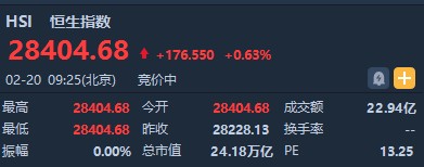 智通財(cái)經(jīng)APP獲悉,恒生指數(shù)開盤漲0.63%,報(bào)28404.68點(diǎn)。國(guó)企指數(shù)漲0.78%,報(bào)11203.52點(diǎn)。紅籌指數(shù)漲0.55%,報(bào)4503.48點(diǎn)。大市盤前成交22.94億港元。隔夜美股方面,納指、標(biāo)指微漲,道指近乎平收,港股ADR指數(shù)全日走好。