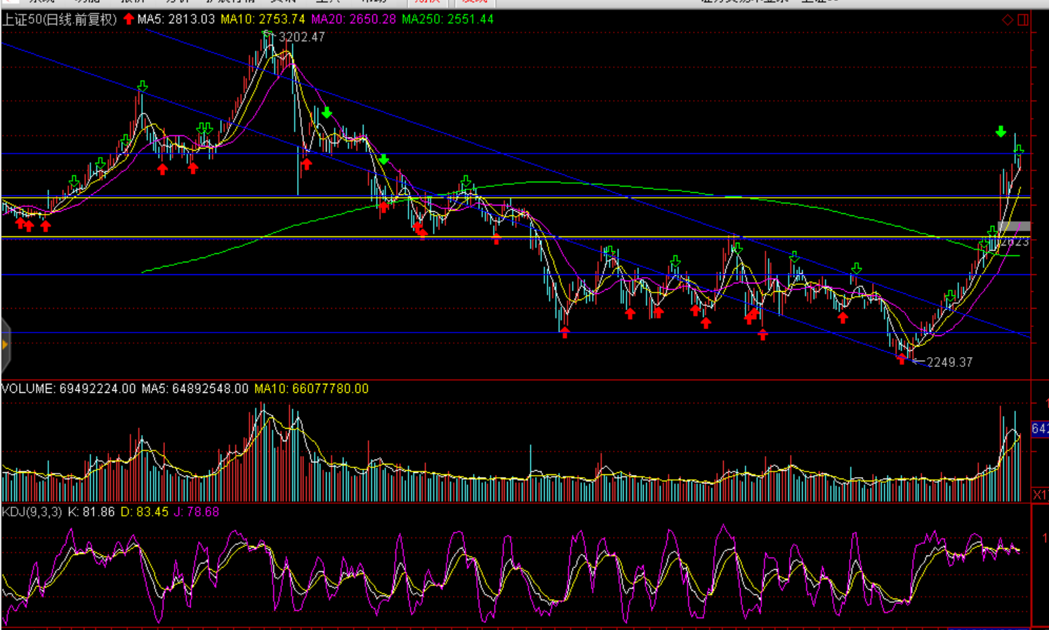 技術(shù)面:滬市成交量小幅增加,逼近前期高位;MACD指標(biāo)黃白線繼續(xù)上行,紅柱略微放大。兩市主力資金卻出現(xiàn)巨額凈流出,凈流出額278.67億元,較前一交易日巨幅增加,已是連續(xù)7個(gè)交易日凈流出。短期嚴(yán)重超買,從股指期貨IH滯漲看短期上行空間有限。