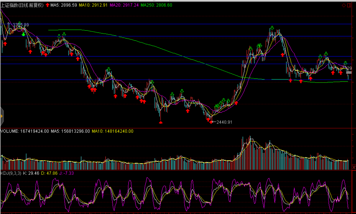 技術(shù)面:短期延續(xù)弱勢(shì)調(diào)整,滬綜指跌破6月初低點(diǎn)(2822點(diǎn)),年線2800點(diǎn)一線成為短期爭(zhēng)奪焦點(diǎn)。