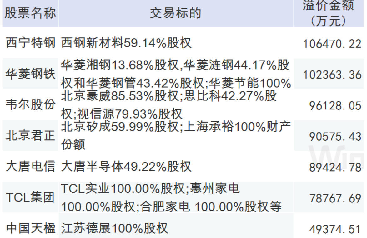 2019年高溢價并購重點標的: