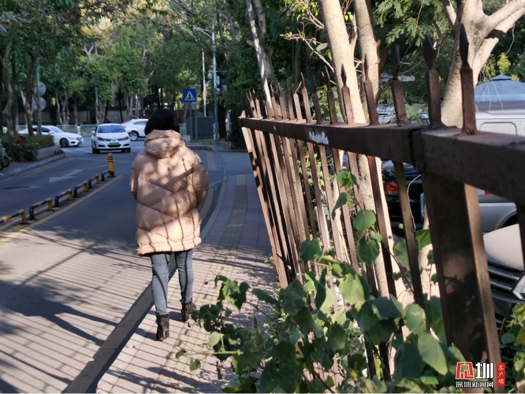 1月12日下午4時30分,正是小學(xué)放學(xué)時間。記者在竹香一路看到,過往接送孩子的家長絡(luò)繹不絕。由于竹香一路一側(cè)人行道通行距離不足一米,且靠近深南汽配城的鐵柵欄”張牙舞爪“,搖搖欲墜,向外傾斜擠壓了通行空間,不少家長讓孩子走在人行道上,自己則是走在車行道上,與身邊的汽車擦肩而過。