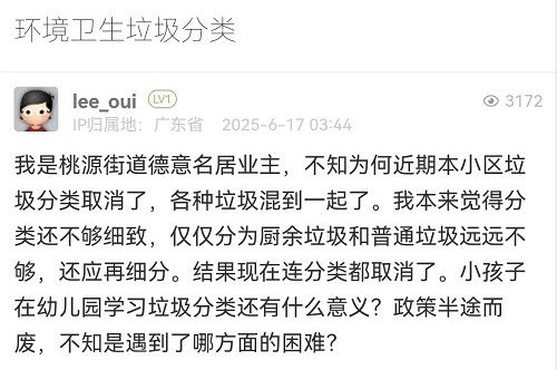 您好!感謝您對我街道工作的關(guān)注與支持。針對您反映的“德意名居小區(qū)取消環(huán)境衛(wèi)生垃圾分類”問題,我街道已組織相關(guān)人員進(jìn)行核查,現(xiàn)回復(fù)如下: