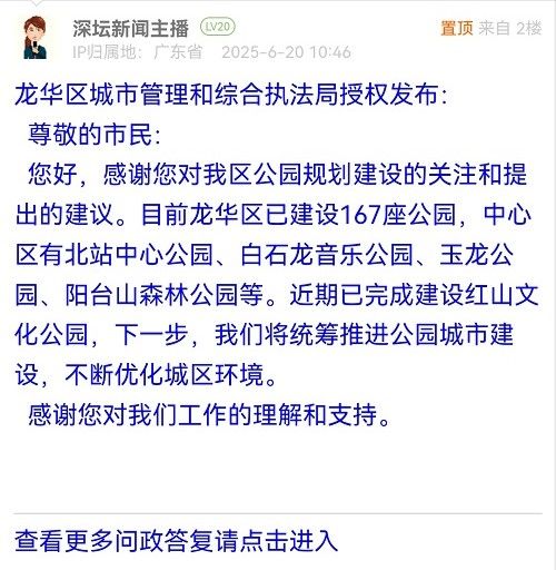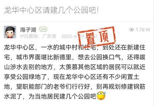 7. 帖文《龍華中心區(qū)請建幾個公園吧!》