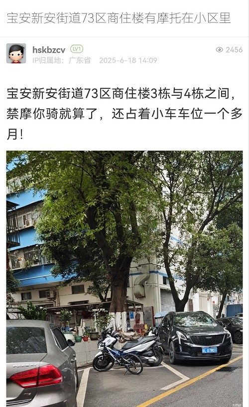 9. 帖文《寶安新安街道73區(qū)商住樓有摩托在小區(qū)里》