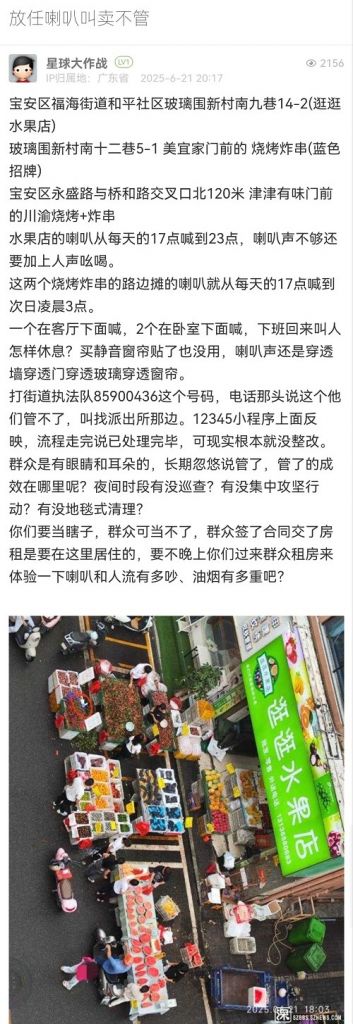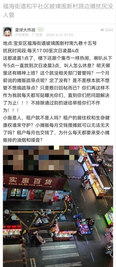 11. 帖文《福海街道和平社區(qū)玻璃圍新村路邊攤擾民沒人管》
