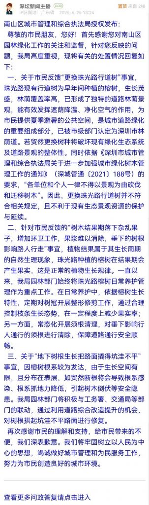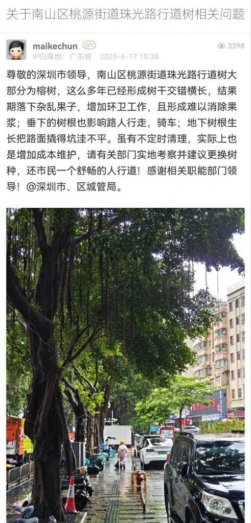 16. 帖文《關(guān)于南山區(qū)桃源街道珠光路行道樹相關(guān)問題》