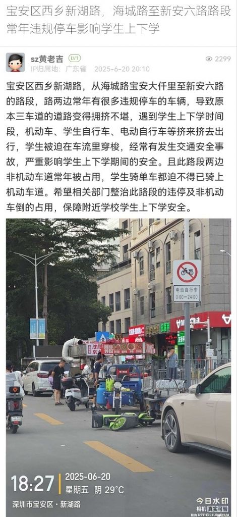 14. 帖文《寶安區(qū)西鄉(xiāng)新湖路,海城路至新安六路路段常年違規(guī)停車影響學(xué)生上下學(xué)》