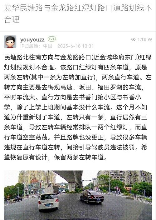 8. 帖文《龍華民塘路與金龍路紅綠燈路口道路劃線不合理》
