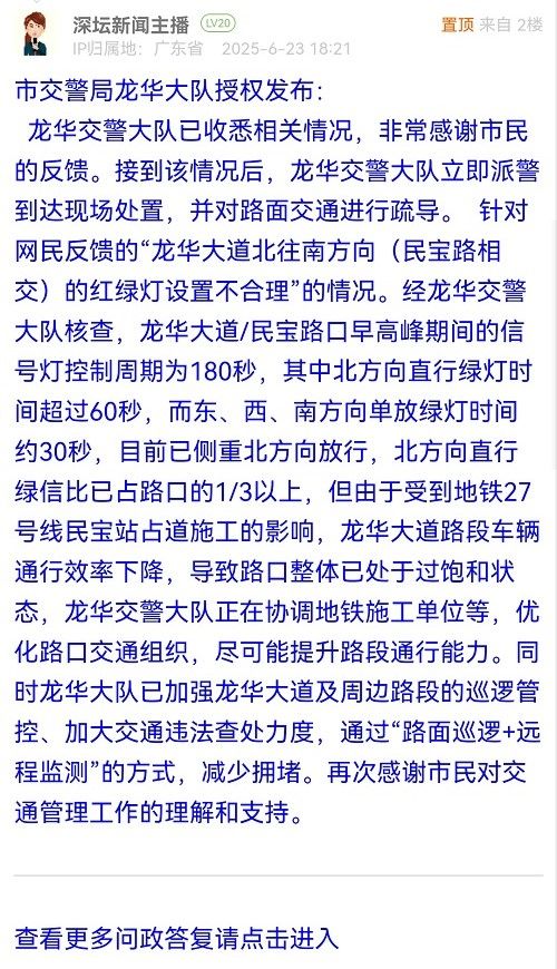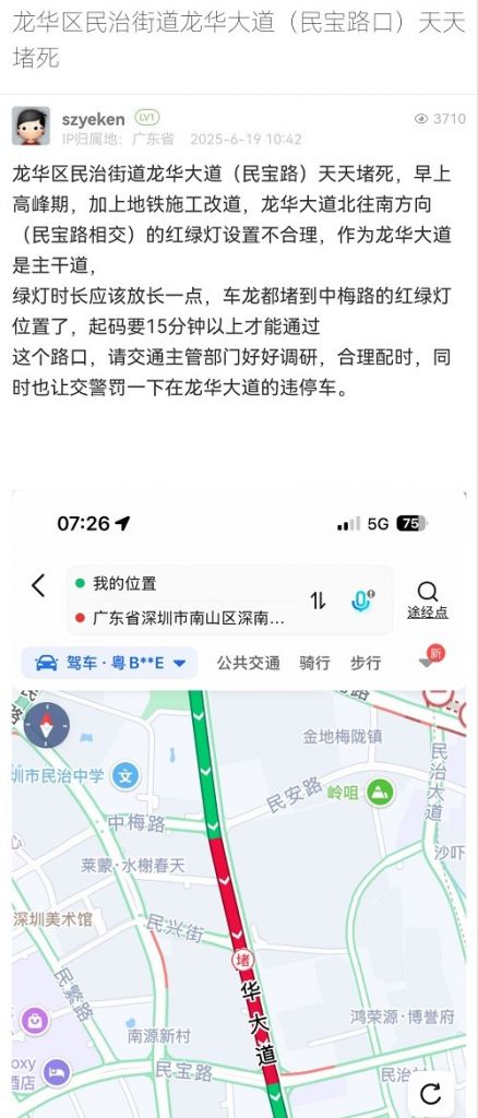10. 帖文《龍華區(qū)民治街道龍華大道(民寶路口)天天堵死》