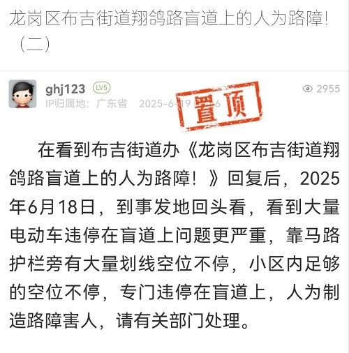 6. 帖文《龍崗區(qū)布吉街道翔鴿路盲道上的人為路障?。ǘ?/a>》