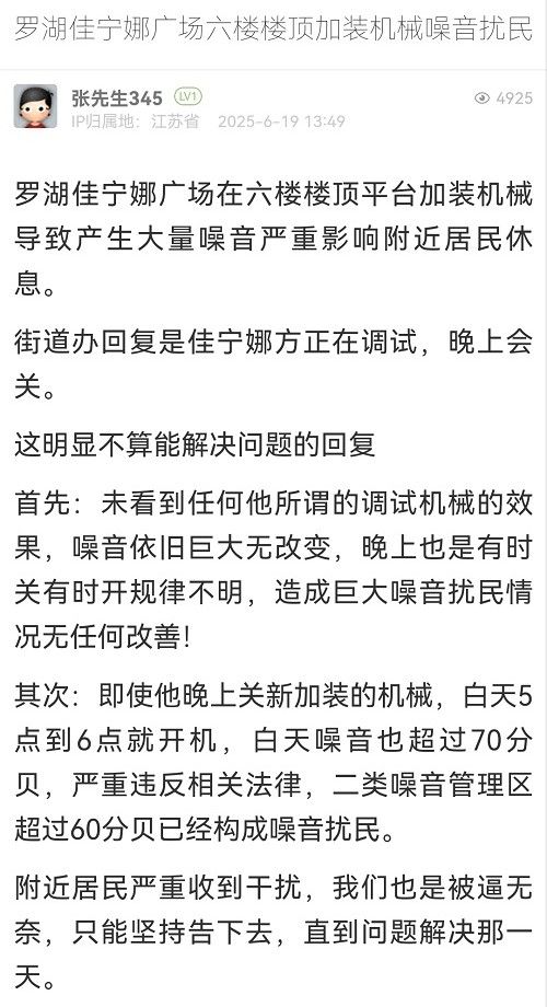 19. 帖文《羅湖佳寧娜廣場六樓樓頂加裝機(jī)械噪音擾民》