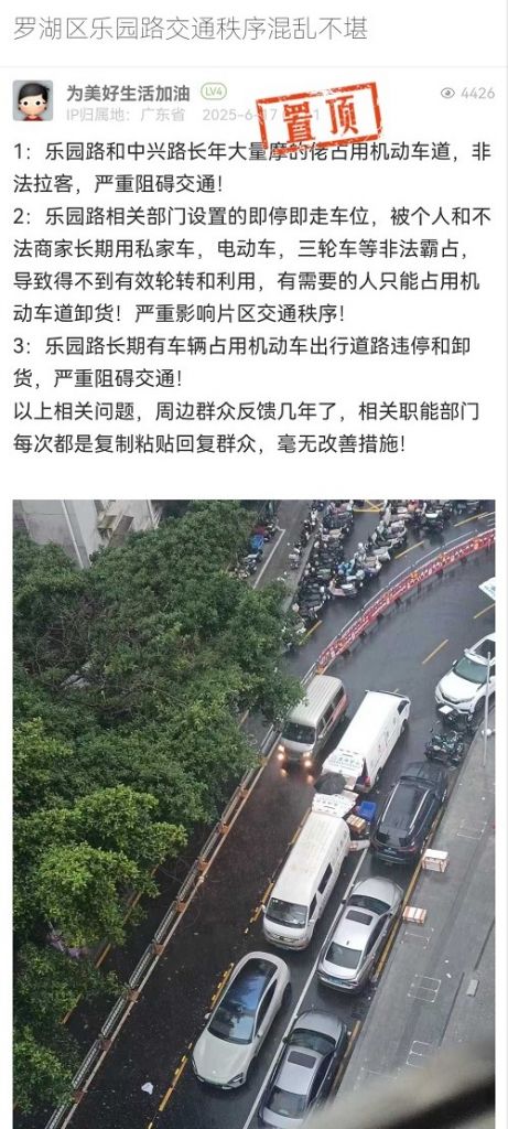 5. 帖文《羅湖區(qū)樂園路交通秩序混亂不堪》
