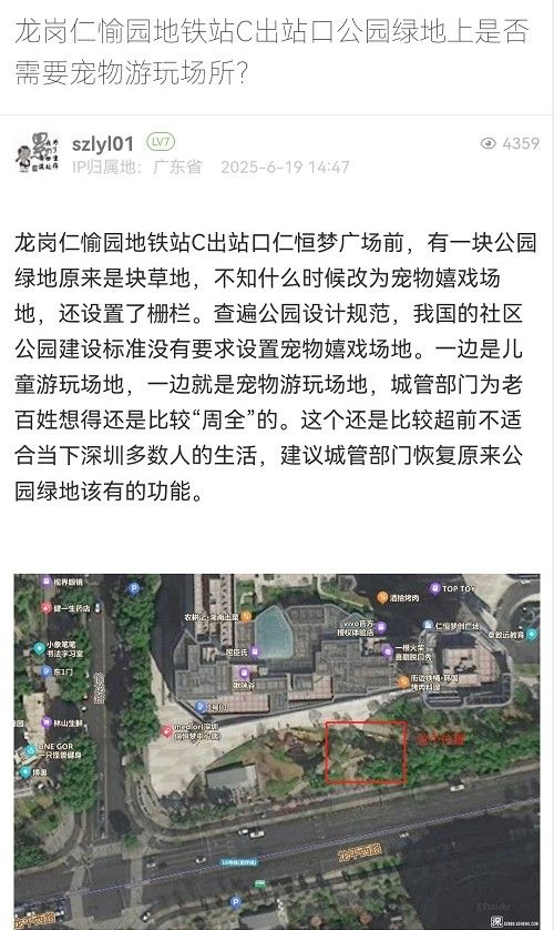 12. 帖文《龍崗仁愉園地鐵站C出站口公園綠地上是否需要寵物游玩場所?》