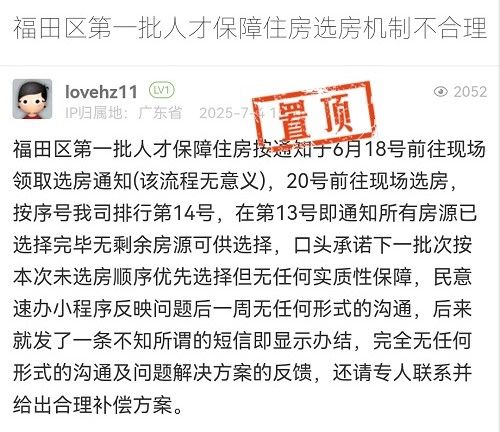 9. 帖文《福田區(qū)第一批人才保障住房選房機(jī)制不合理》