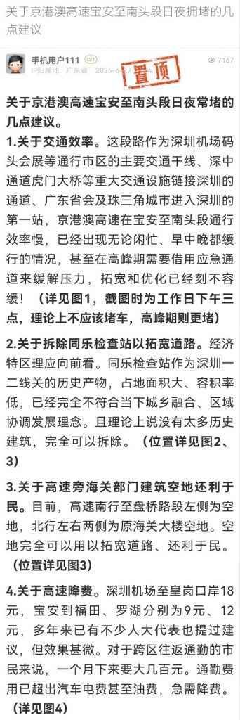 19. 帖文《關(guān)于京港澳高速寶安至南頭段日夜擁堵的幾點(diǎn)建議》