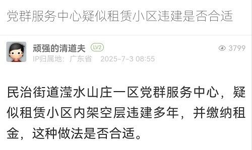 15. 帖文《黨群服務(wù)中心疑似租賃小區(qū)違建是否合適》