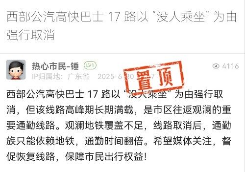 1. 帖文《西部公汽高快巴士 17 路以 “沒人乘坐” 為由強(qiáng)行取消》