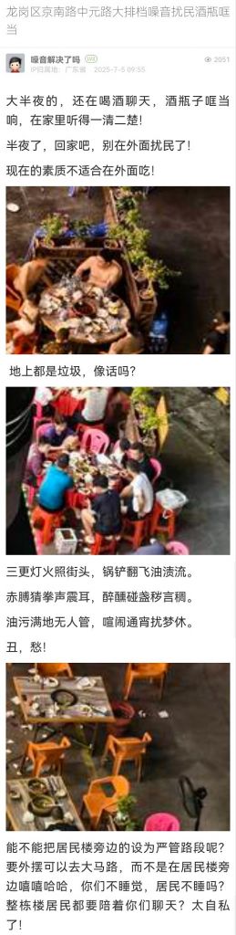 21. 帖文《龍崗區(qū)京南路中元路大排檔噪音擾民酒瓶哐當(dāng)》
