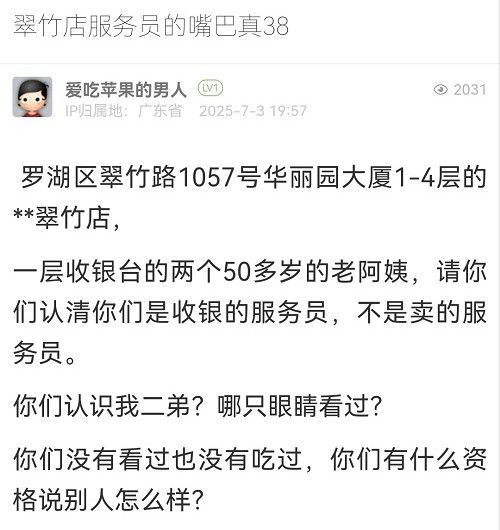 7. 帖文《翠竹店服務(wù)員的嘴巴真38》