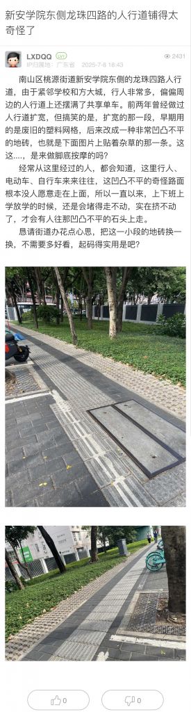 36. 帖文《新安學(xué)院東側(cè)龍珠四路的人行道鋪得太奇怪了》
