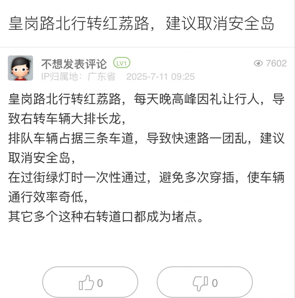 23. 帖文《皇崗路北行轉(zhuǎn)紅荔路,建議取消安全島》