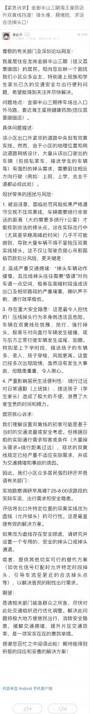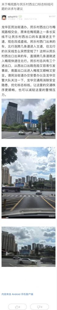 11. 帖文《關(guān)于梅觀路與民樂村西出口標(biāo)志標(biāo)線問題的訴求與建議》