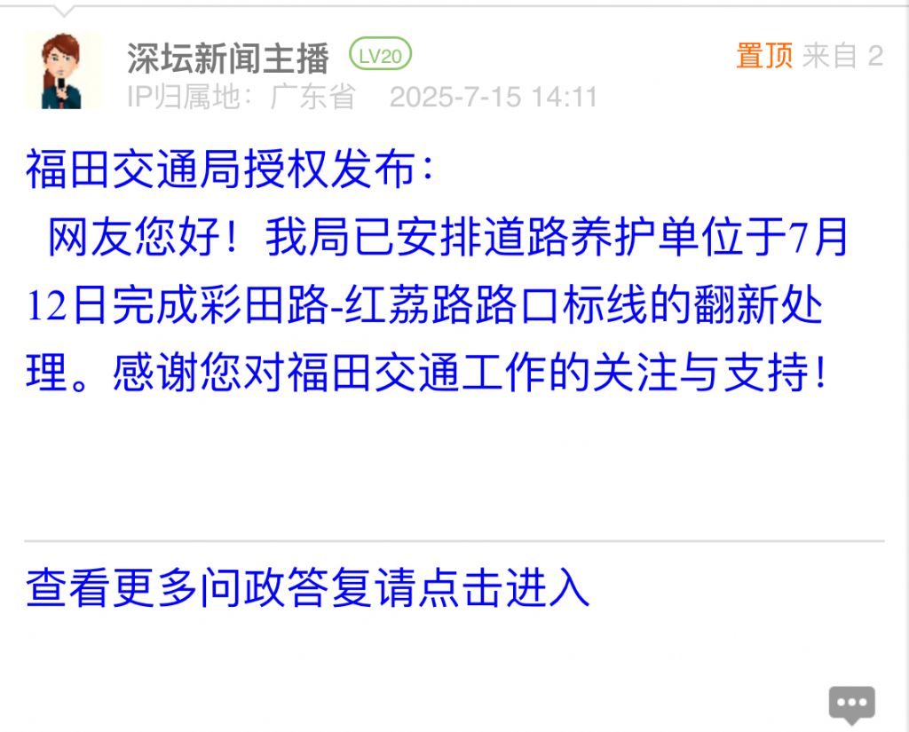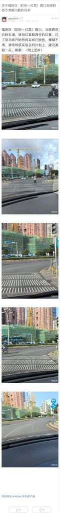 9. 帖文《關(guān)于福田區(qū)(彩田~紅荔)路口標(biāo)線脫色不清晰問題的訴求》