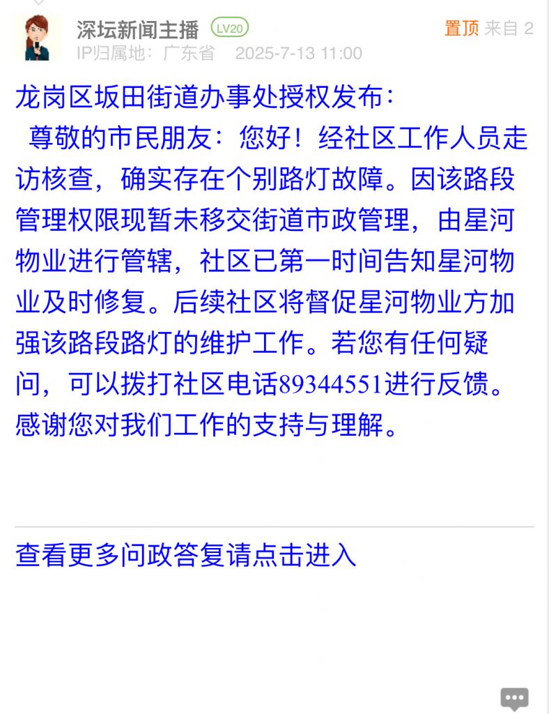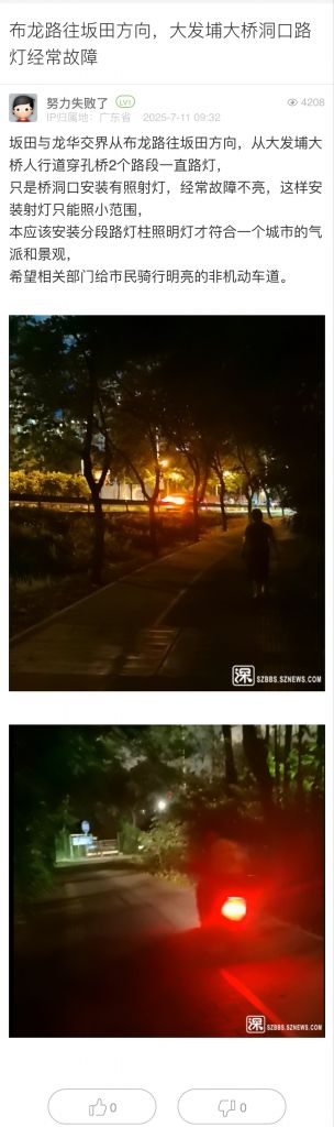 24. 帖文《布龍路往坂田方向,大發(fā)埔大橋洞口路燈經(jīng)常故障》