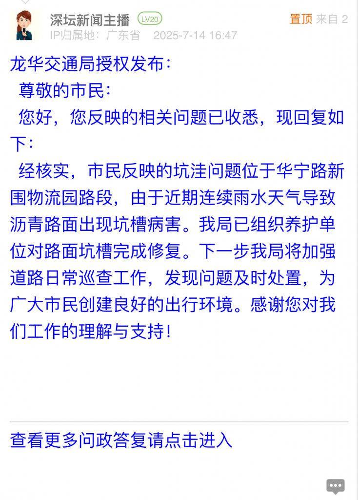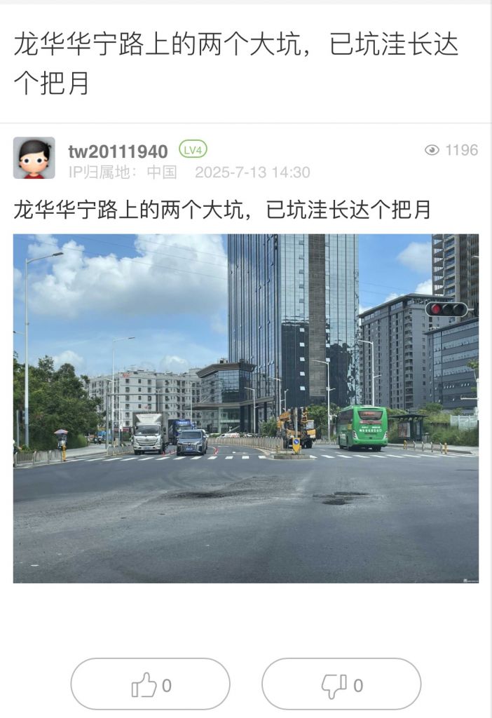 28. 帖文《龍華華寧路上的兩個大坑,已坑洼長達(dá)個把月》