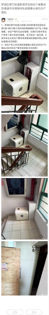 3. 帖文《羅湖區(qū)翠竹街道新港鴻花園住戶堵塞消防通道并在樓梯間私裝攝像頭侵犯住戶隱私》