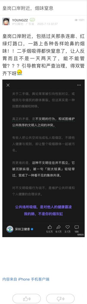 31. 帖文《皇崗口岸附近,煙味窒息》