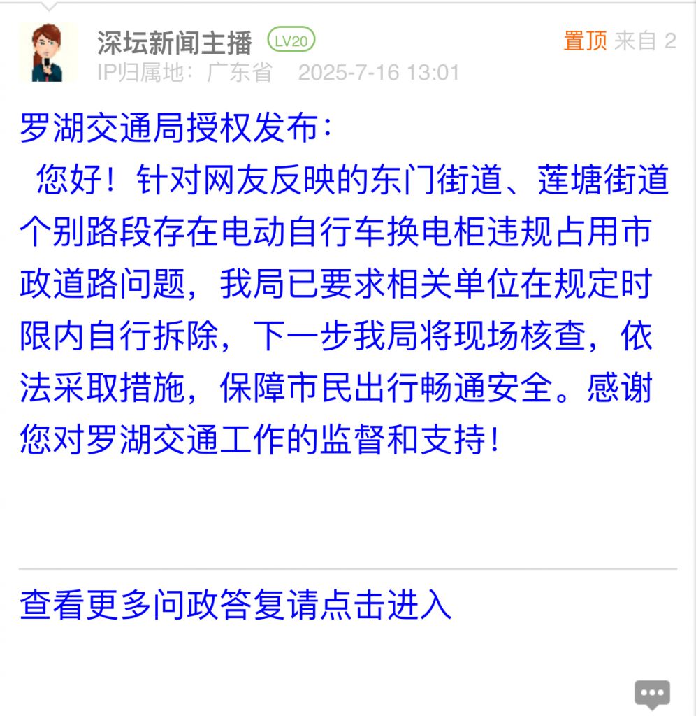 25. 帖文《蓮塘的電動自行車換電柜是否違規(guī)占用市政道路?》