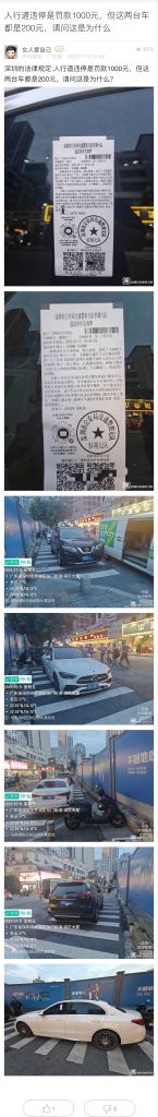 27. 帖文《人行道違停是罰款1000元,但這兩臺車都是200元,請問這是為什么》