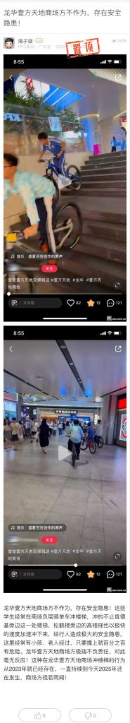 22. 帖文《龍華壹方天地商場方不作為,存在安全隱患!》