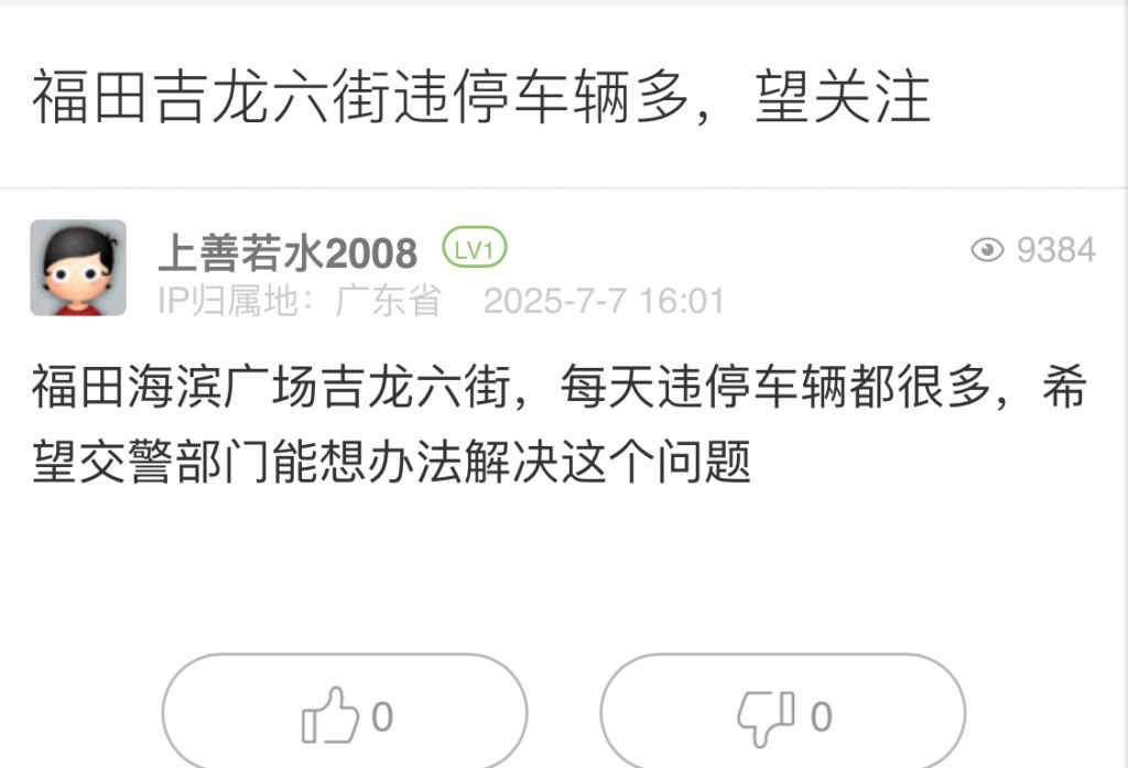 7. 帖文《福田吉龍六街違停車輛多,望關(guān)注》