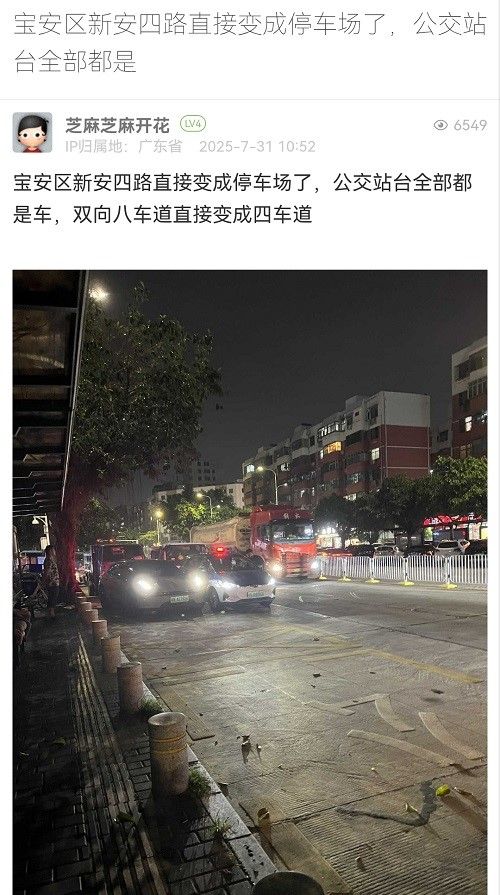 18. 帖文《寶安區(qū)新安四路直接變成停車(chē)場(chǎng)了,公交站臺(tái)全部都是》