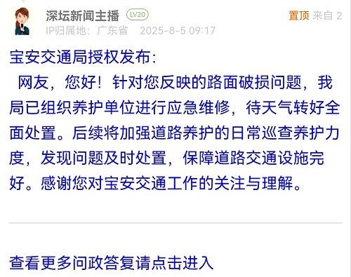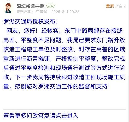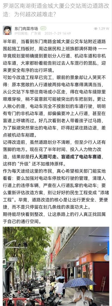 7. 帖文《羅湖區(qū)南湖街道金城大廈公交站周邊道路改造:為何越改越難走?》