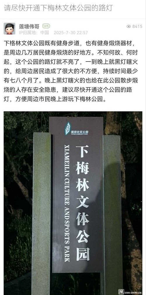 14. 帖文《請(qǐng)盡快開(kāi)通下梅林文體公園的路燈》