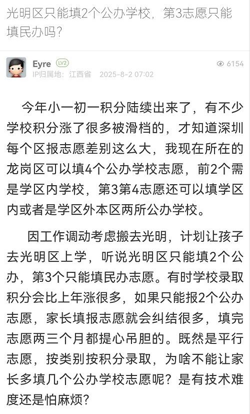 26. 帖文《光明區(qū)只能填2個(gè)公辦學(xué)校,第3志愿只能填民辦嗎?》
