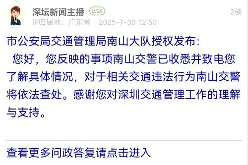 據(jù)統(tǒng)計(jì),2025年7月28日-2025年8月3日,網(wǎng)友在深圳論壇發(fā)布問(wèn)政類(lèi)帖文共35篇,得到相關(guān)單位正式回應(yīng)的帖文數(shù)為35篇,本期簡(jiǎn)報(bào)回應(yīng)速度最快的單位:市公安局交通管理局南山大隊(duì)、羅湖區(qū)南湖街道辦事處、龍崗區(qū)橫崗街道辦事處、市公安局交通管理局龍華大隊(duì)。