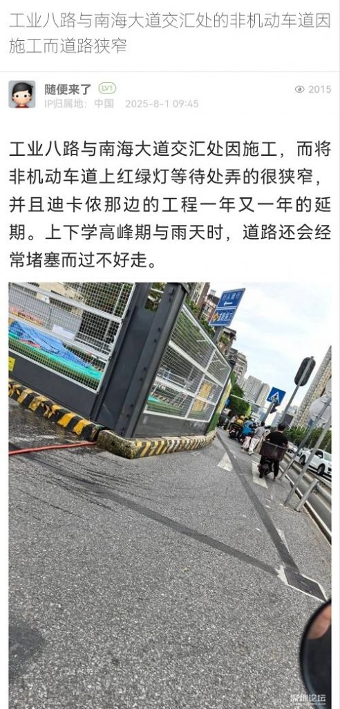 22. 帖文《工業(yè)八路與南海大道交匯處的非機(jī)動(dòng)車(chē)道因施工而道路狹窄》
